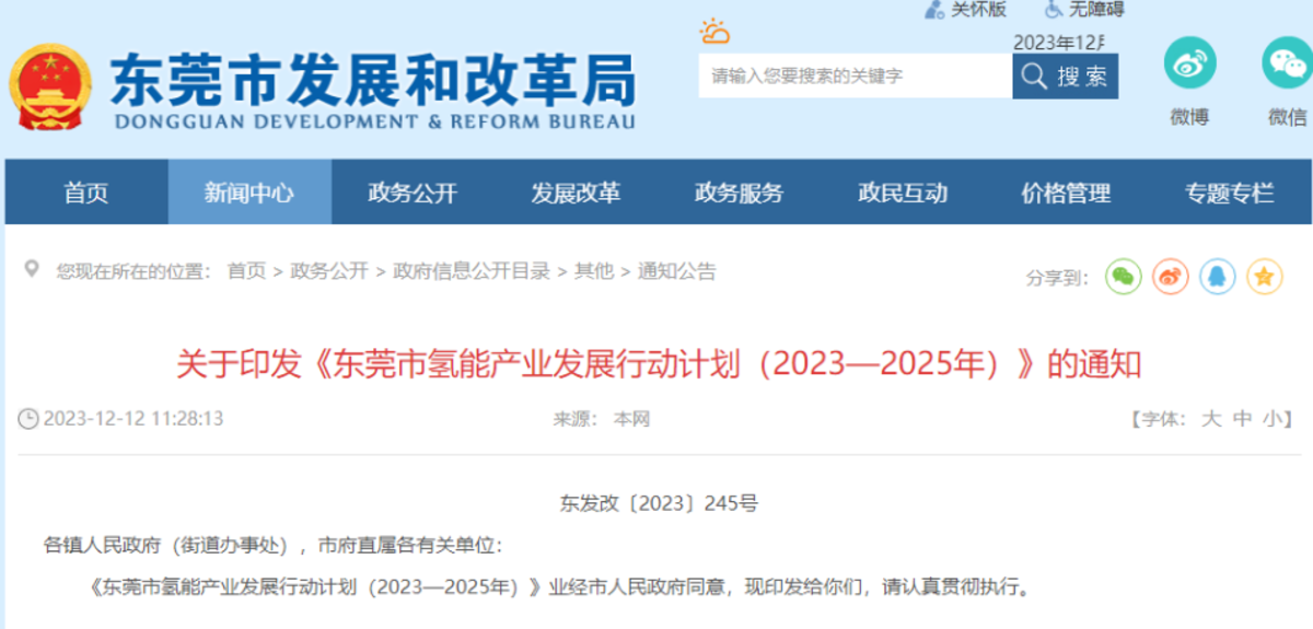 关于印发《东莞市氢能产业开展行动计划(2023—2025年)》的通知