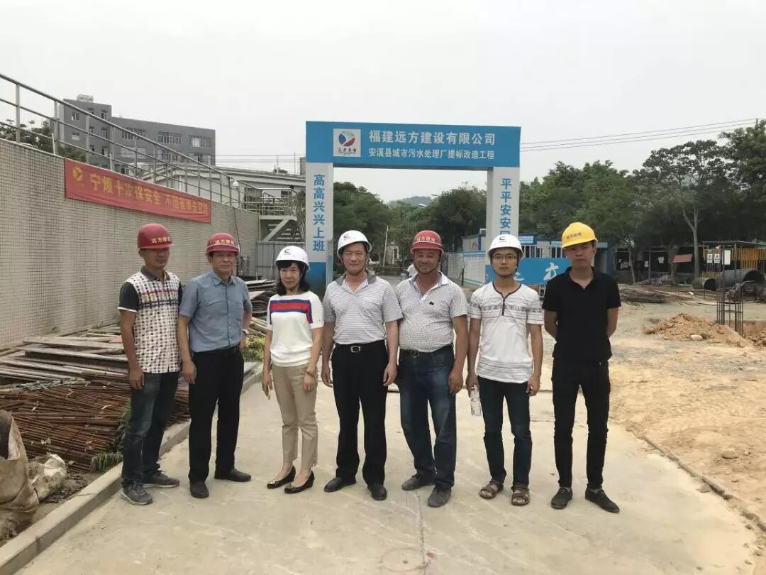朱煜煊董事长察看了提标改造项目建筑施工情况,对安溪厂将工艺设备纤维滤布滤池更改为精密过滤机给予肯定,并表示精密过滤机可以大大提升污水的处理效果,也有利于后期污水厂的维护管理。